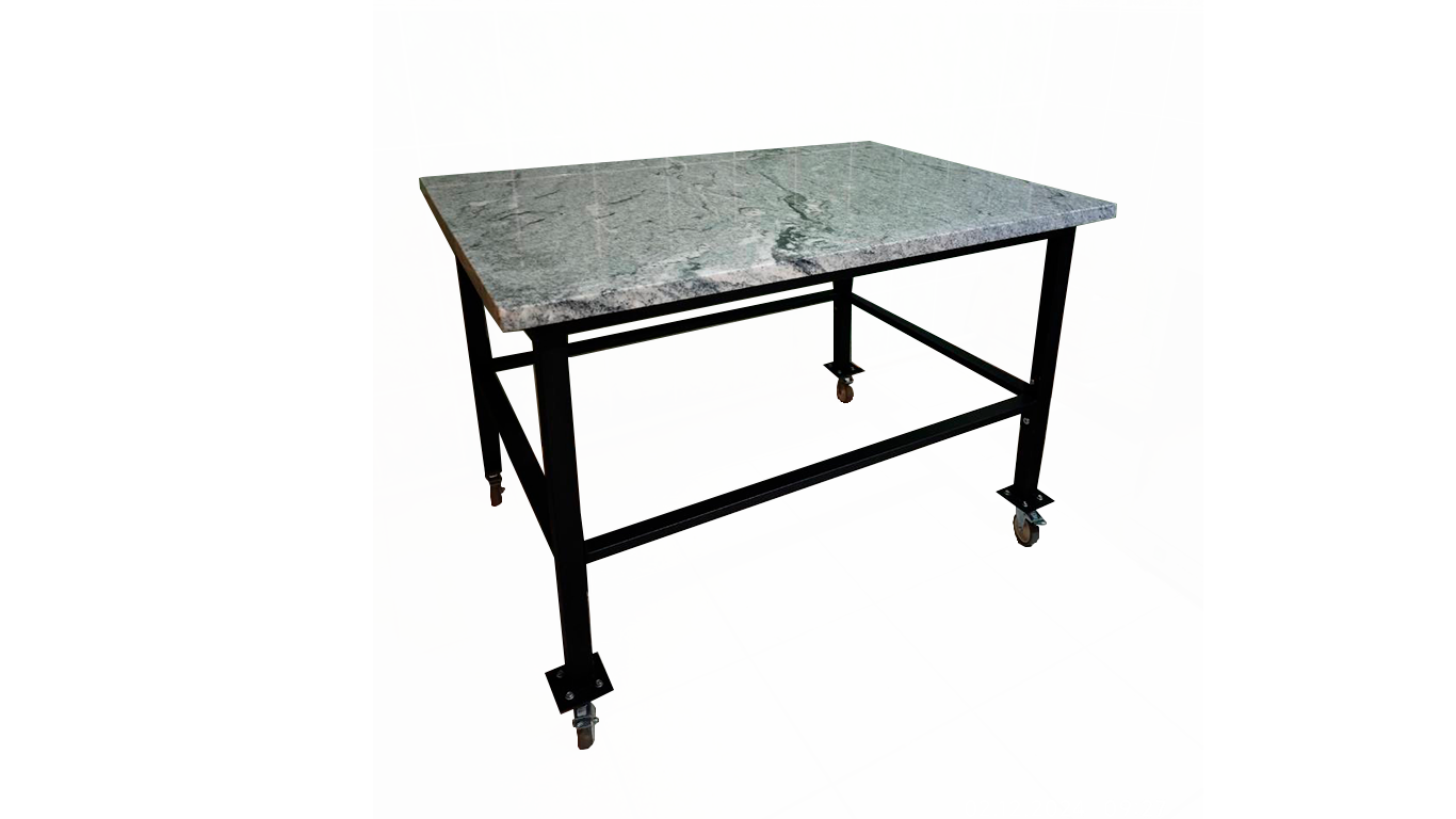 Стол предназначен для раскроя различных материалов, округления книжных блоков, реставрации листового материала и прочих работ. Поверхность стола не подвержена образованию царапин, а его значительный вес гарантирует стабильность во время проведения реставрационных работ. В конструкции предусмотрены колёса с системой фиксации, обеспечивающие мобильность.