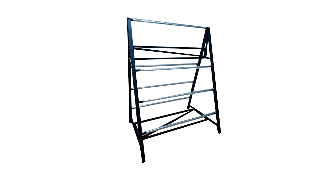 Стойка предназначена для хранения рулонов бумаги, ткани и т. д. Во избежании падения стойка снабжена держателями-фиксаторами рулонов. Материал – сталь.